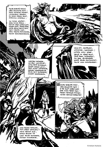 ...Sarjakuvana tämä on kaikin puolin nautittava lukukokemus ja Huitula onnistuu löytämään jälleen uusia puolia kansalliseepoksestamme, sen sijaan että esimerkiksi kuvituksessa tyytyisi ainoastaan standardinomaisesti uudelleen versioimaan jo visualisoitua Kalevalaa.