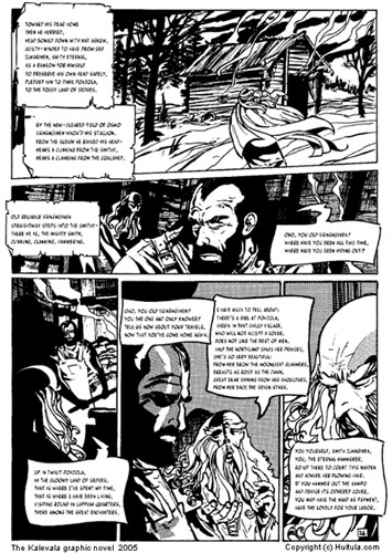 The Kalevala comic book was also published in Russia in 2003. The same year Kristian Huitula was awarded as 'The Young Artist of the Year' for his work by the Kalevala Society foundation (FINLAND). Since its first Finnish edition in 2000 the Kalevala Graphic Novel has become one of the best-selling graphic novels in Finland. At last the magic of The Kalevala has found its way to the audience in a new modern form, being more intriguing and approachable than ever before.
