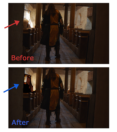 -Esimerkkiotoksessa auringonvalon poistaminen ja tietyn kohteen muokkaaminen valaistukseen sopivaksi (Kristian Huitula: The Savior).